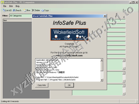 • WakefieldSoft InfoSafe Plus v4.6.7 英文正式版(基於Palm OS/Pocket PC和 Windows Mobile 和 PC的個人安全資訊管理軟體)