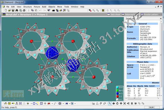 CrystalDiffract讀取存儲的晶體文件,用簡單的操作和測量工具在螢幕上模擬X射線或