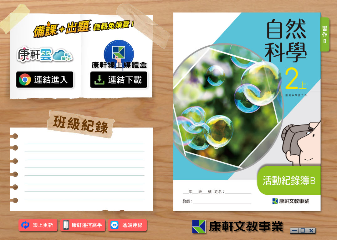 112學年上學期 國中 康軒版 自然 活動記錄簿B 電子書 2年級 教學光碟