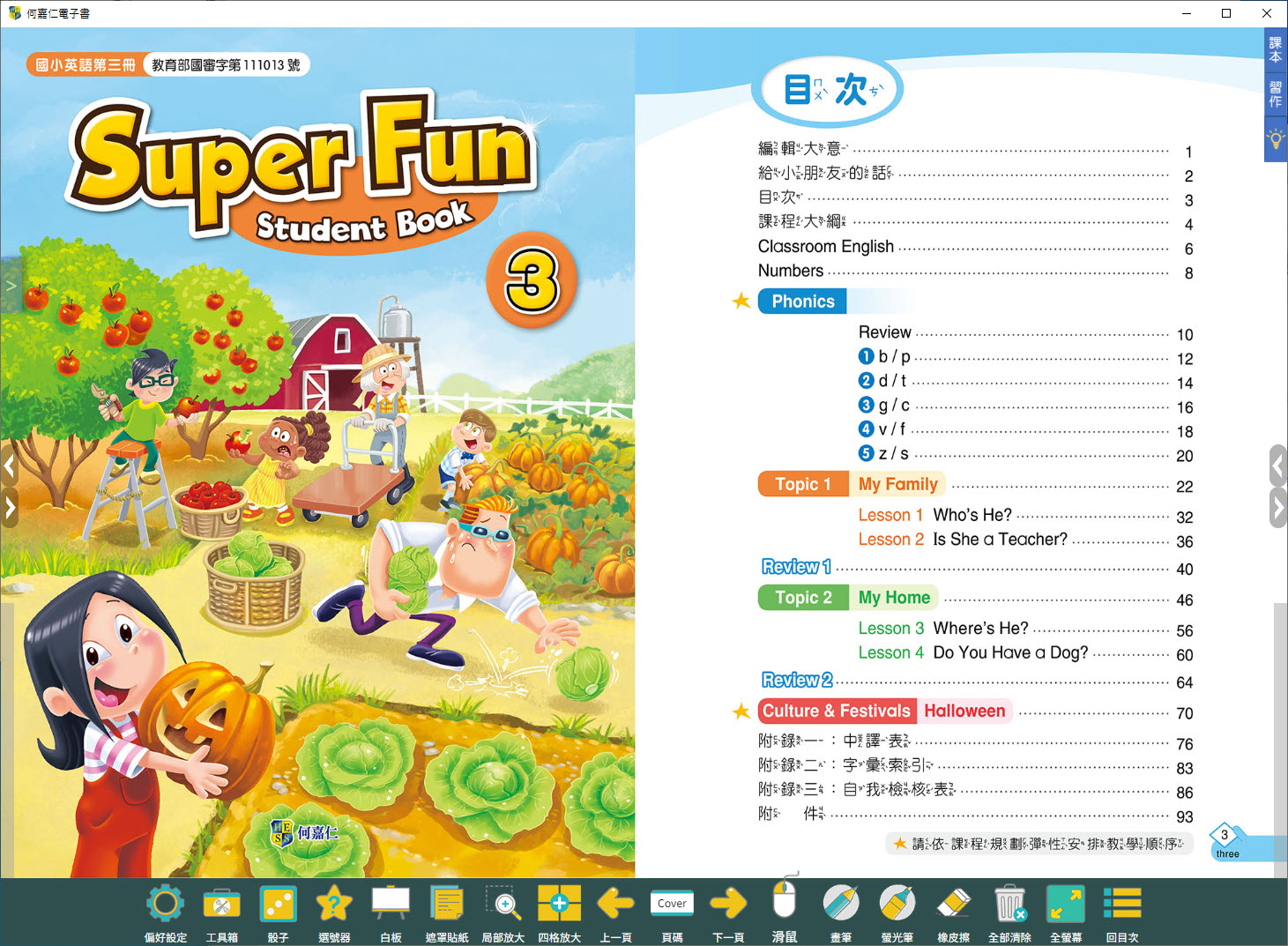 112學年上學期 國小 何嘉仁 英語電子書 Super Fun 第3冊(含課本、習作含解答)教學光碟