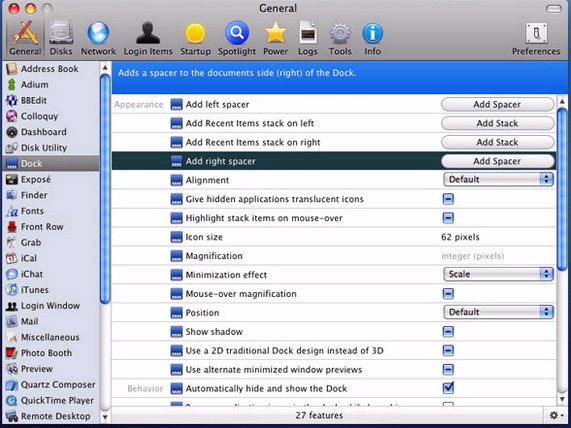 可以開啟和關閉Macosx上百個隱藏功能. 並且可以幫助你修復和檢查系統. 本為英文版