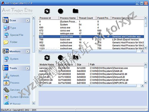 一款特洛依木馬/鍵盤記錄病毒刪除工具。同時它也是一款系統安全工具,你可以通過它查看網路和